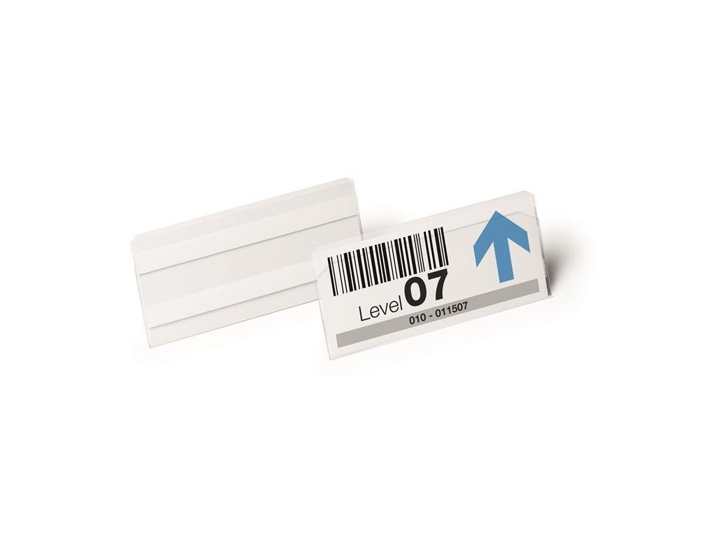 Logistická kapsa na dokumenty z průhledné pevné PET fólie, se dvěma samolepicími proužky na zadní straně. Lepicí proužky lze odstranit bez zanechání stopy. Použití na police, plastové nádoby, dřevěné a kartonové krabice. Vhodné pro skenery a odolné proti roztržení. Dokumenty lze rychle vyměnit. Stažení šablon pro vkládání štítků je k dispozici na adrese www.duraprint.eu.Vnitřní formát: 150 x 67 mm