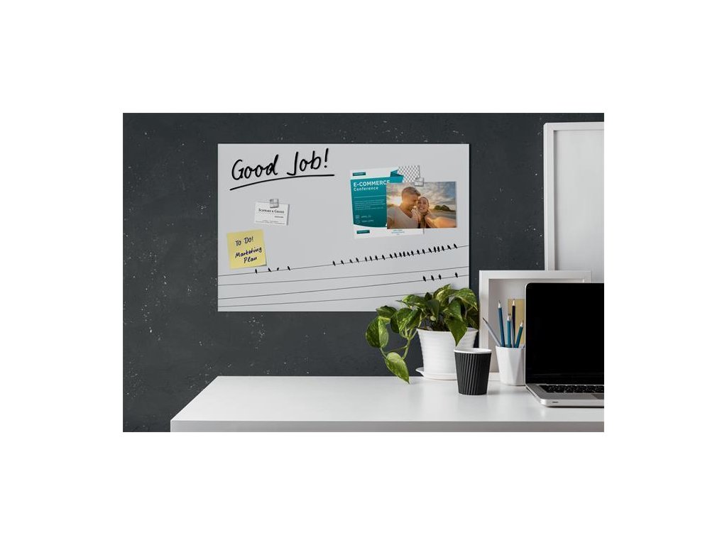 Vlastnosti: magnetická; popisovatelná křídovými popisovači a popisovači na skleněné tabule; snadná montáž na stěnu; exkluzivní vzhled; matný povrch