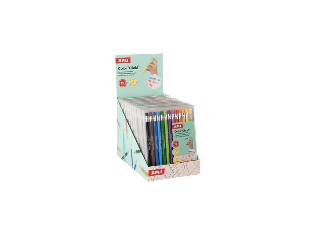 Mechanická pastelka "Color Click", displej/12 ks, 12 různých barev, sada, APLI 20545