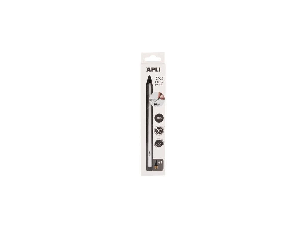 Objevte revoluční nekonečnou grafitovou tužku APLI HB Infinite – perfektní volba pro nepřetržité, nepřerušované psaní! Tato inovativní tužka poskytuje výjimečný zážitek z psaní, lehkost a působivou odolnost.Odolná grafitová tuha Vám zaručí až 16 km psaní bez jediného ořezání