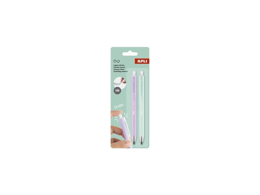Nekonečná tužka "Infinite Click", fialová a zelená, HB, stiskací mechanismus, 2 ks, APLI 20065