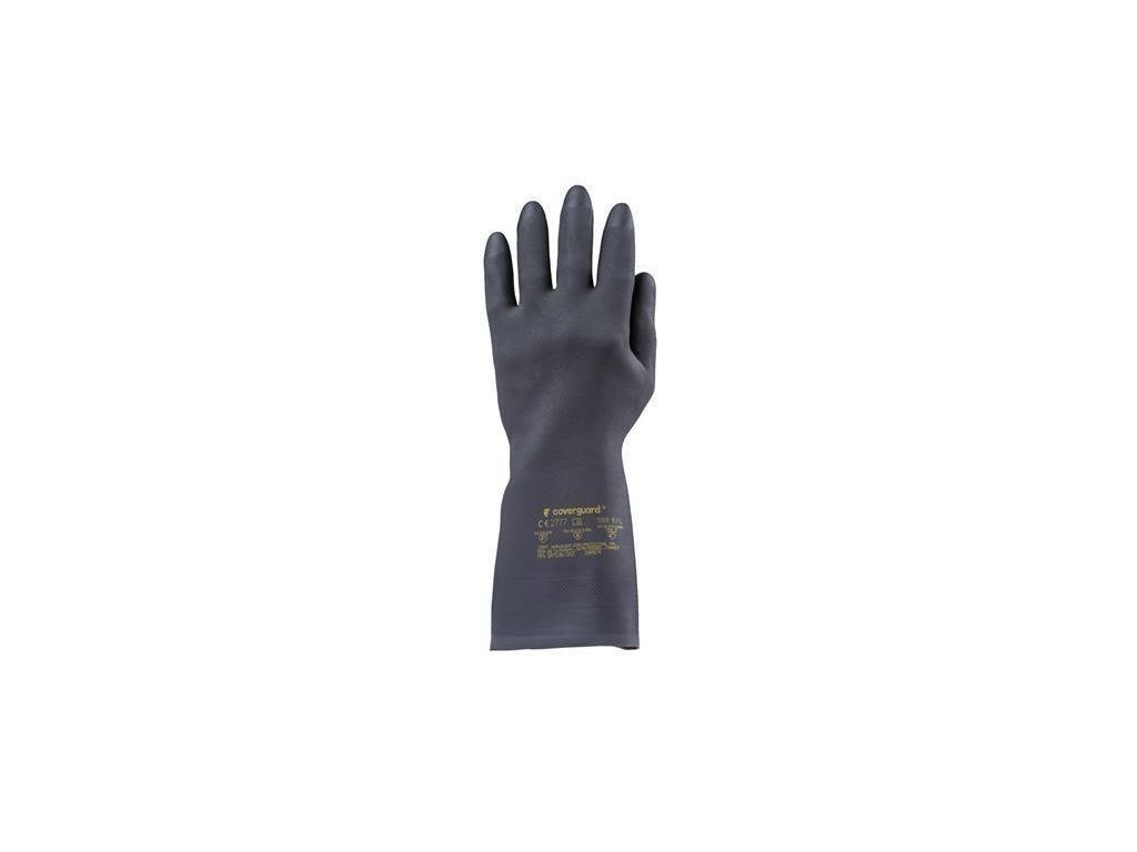 Ochranné rukavice odolné vůči chemikáliím s ochranou proti mikroorganismům.Vnitřní část s bavlněnou výstelkouProtiskluzová zdrsněná dlaňCE certifikaceTloušťka: 0,72 mmDélka: 32 cmMateriál: polychloropren a přírodní gumaBarva: černáVelikost: 8/MDoplňkové parametry
