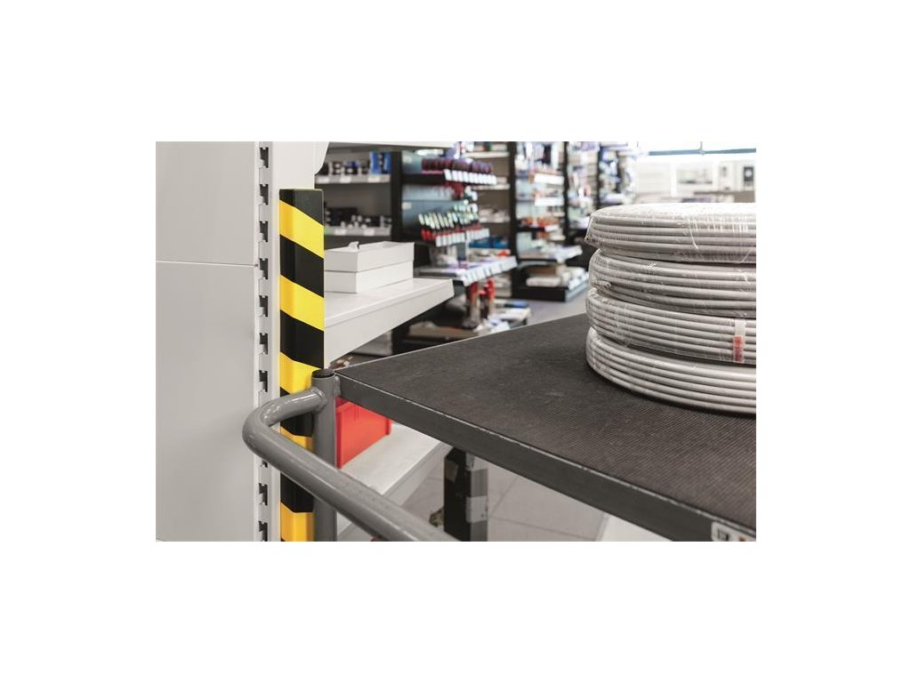 Samolepicí, flexibilní ochranný povrchový profil z polyuretanové pěny, pro vnitřní použití. Poskytuje ideální řešení ve výrobních prostorech, dopravních odděleních, skladech, sklepech, schodištích, garážích, trámech, policích a skříních, ale i strojích, atd.Označuje nebezpečná místa, chrání povrchy, stěny a zmírňuje zranění způsobená nárazem.