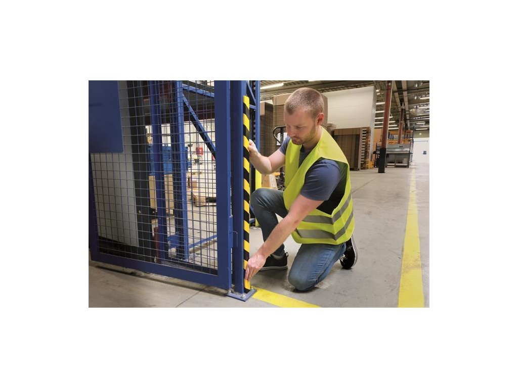 Samolepicí, flexibilní, ochranný rohový profil z polyuretanové pěny, pro vnitřní použití. Poskytuje ideální řešení ve výrobních prostorech, dopravních odděleních, skladech, sklepech, schodištích, garážích, trámech, policích a skříních, ale i strojích, atd. Označuje nebezpečná místa, chrání povrchy, stěny a zmírňuje zranění způsobená nárazem.Profily lze zkrátit na požadovanou délku ostrým nožem