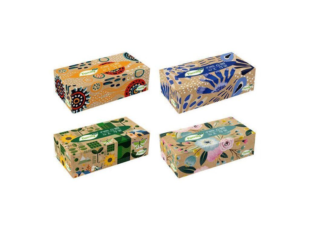 Produktovou řadu Tento Family doporučujeme těm, kteří hledají jednoduchá, ale užitečná hygienická řešení pro svůj domov. Kosmetické ubrousky Tento Family jsou baleny v různých baleních, v půvabně navržených krabičkách z recyklovaného papíru. Boxy jsou navrženy tak, abyste je mohli umístit kdekoli ve vaší domácnosti, na stůl i na kuchyňskou linku.2 vrstvy
