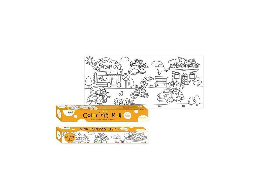 Samolepicí omálovánky v roli určené k vybarvení.Rozvíjí kreativitu a jemnou motoriku