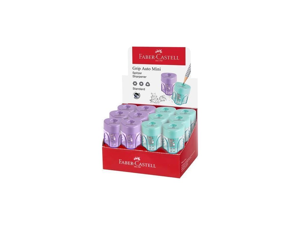 Ořezávátko "GRIP Auto Mini", displej/24 ks, pastelové barvy, 1 otvor, se zásobníkem, FABER-CASTELL