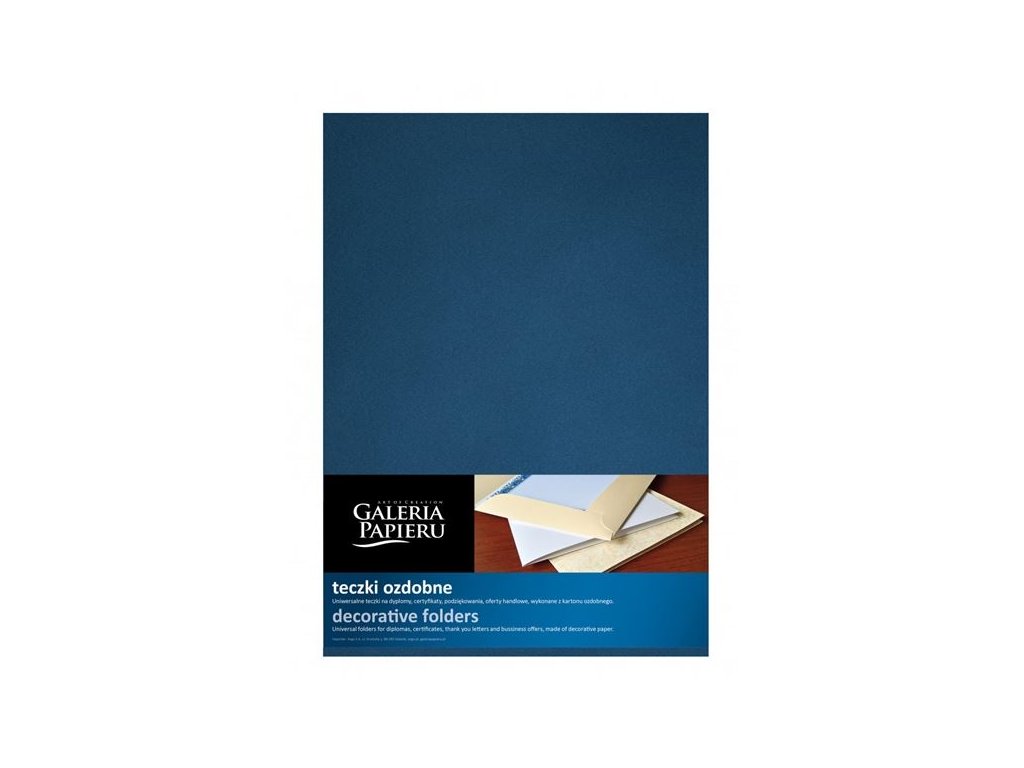 - Papírové desky s chlopněmi a tenkým hřbetem, vyrobené z metalizovaného modrého dekorativního kartonu Millenium, ideální pro certifikáty, diplomy, či obchodní nabídky