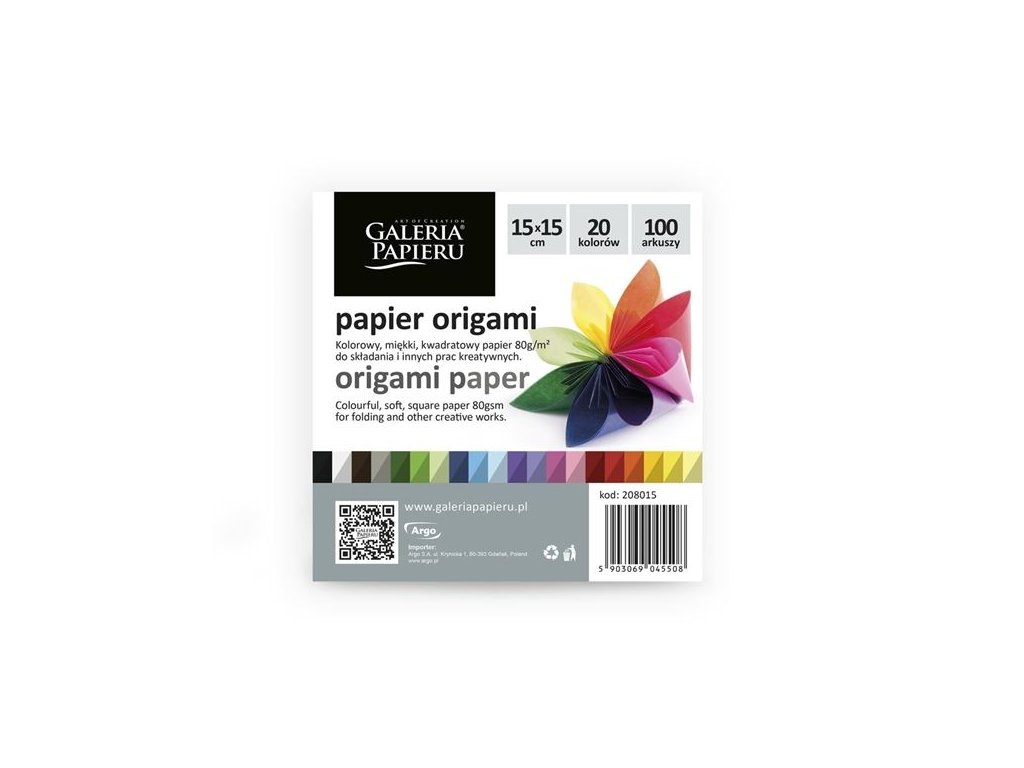 Papír na origami - 15 x 15 cm, mix barev, 100 ks