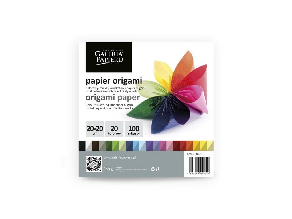 Papír na origami - 20 x 20 cm, mix barev, 100 ks