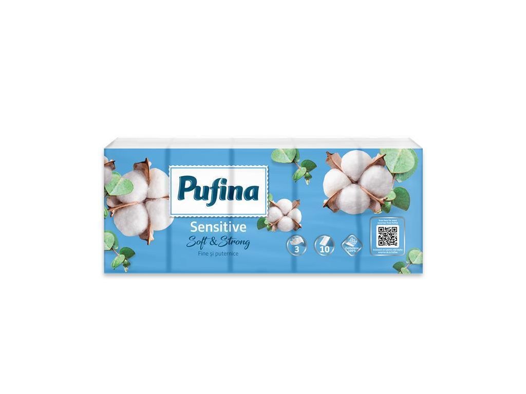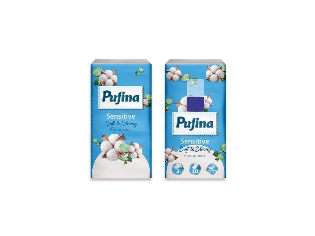Papírové kapesníky "Sensitive", 3-vrstvé, 10x 10 ks, PUFINA PP20833