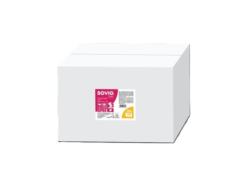 Papírové ručníky, bílá, 2-vrstvé, skládané V, 150 útržků, 21 x 23 cm, SOVIO PP21083