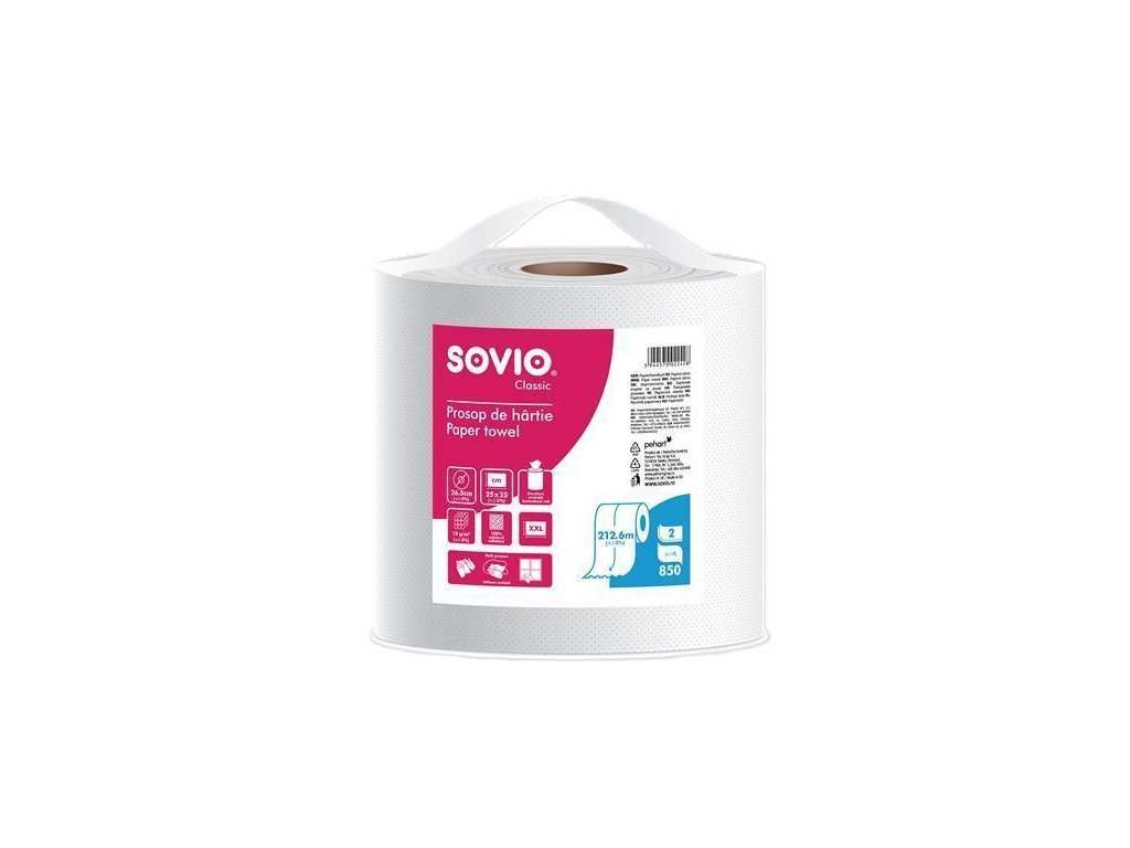 Papírové utěrky, bílá, 2-vrstvé, 212,6 m, průměr 26,5 cm, 1 role, SOVIO PP20907