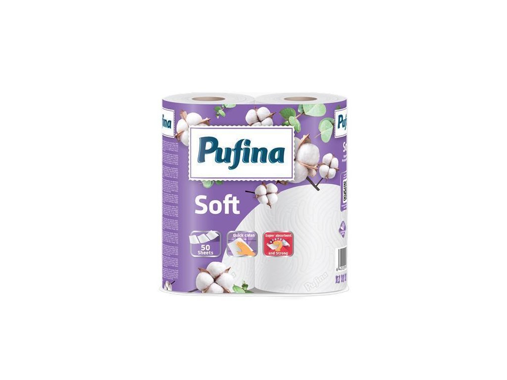 Papírové utěrky "Soft", 2-vrstvé, 50 útržků, 2 role, PUFINA PP20643
