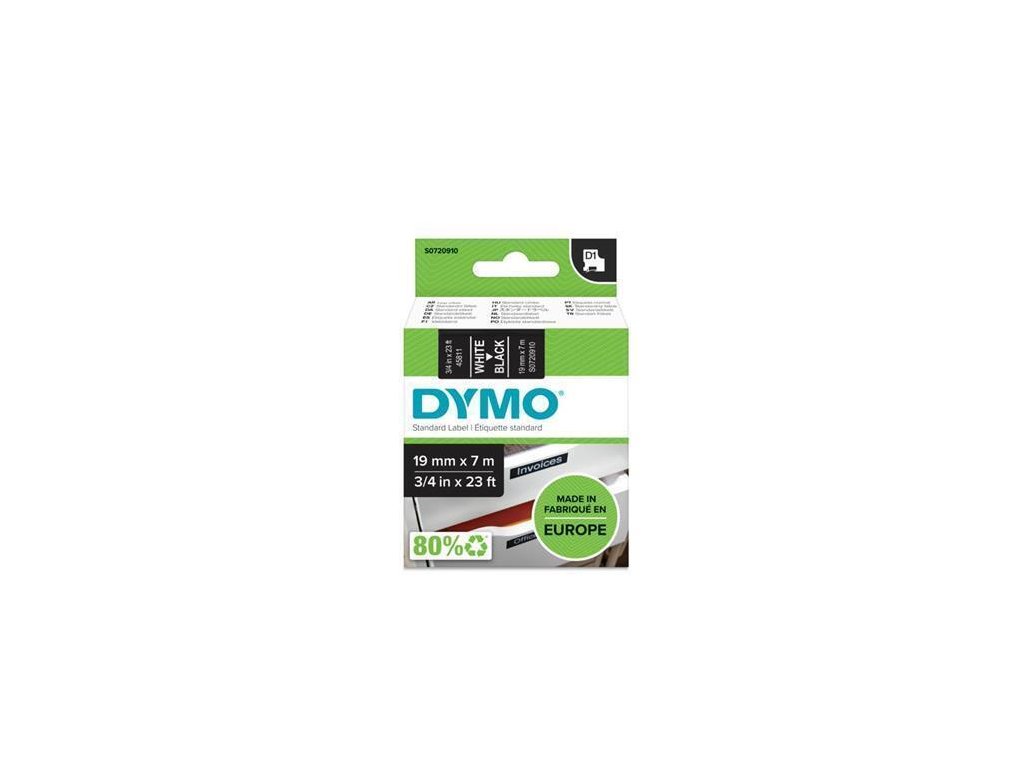 Páska "D1", bílá na černé, polyester, 19 mm x 7 m, DYMO