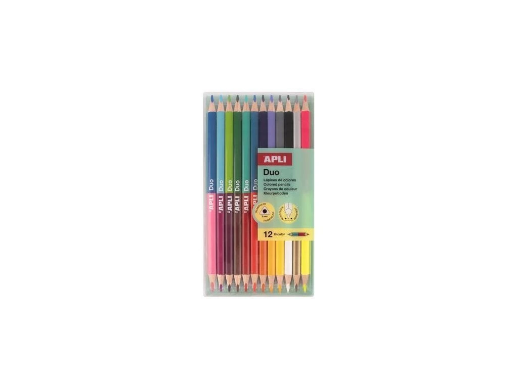 Pastelky "Duo", 24 různých barev, trojhranné, oboustranné, APLI 20082