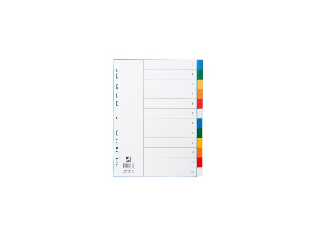 Plast.rozlišovače Q-Connect-A4,bar.okraj.,12 listů