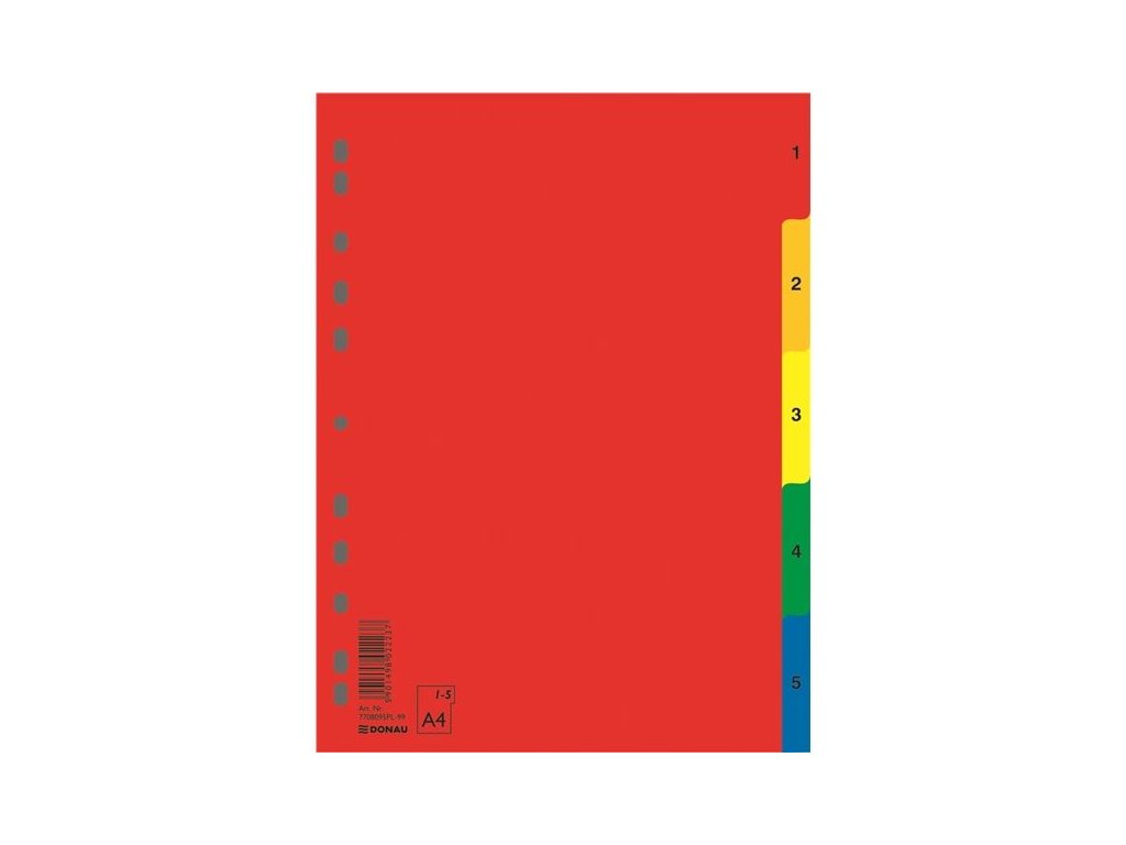 Plastové rozlišovače Donau - A4, barevný, sada 1-5