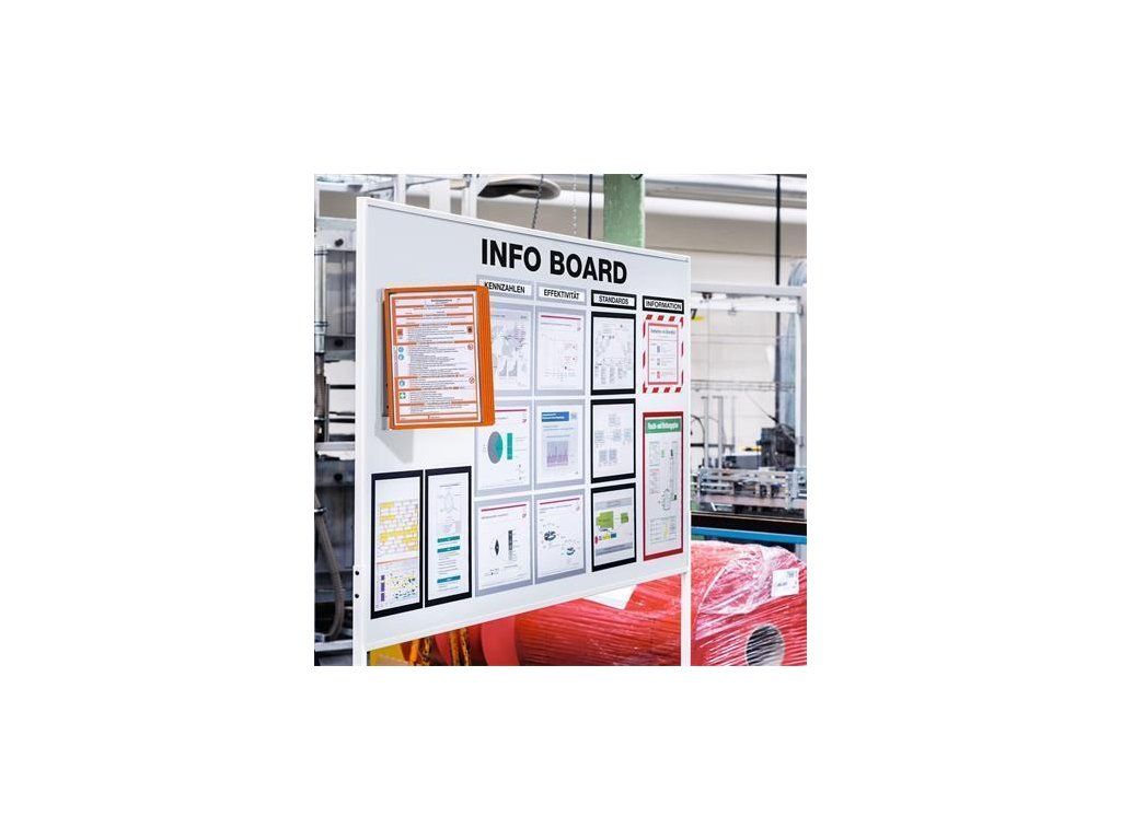 Držák s 5 prezentačními kapsami na formát A4. Vhodný pro umístění různých pracovních materiálů. Snadná montáž na kovové povrchy.Vlastnosti: montáž na stěnu; magnetické; ochrana před znečištěním;