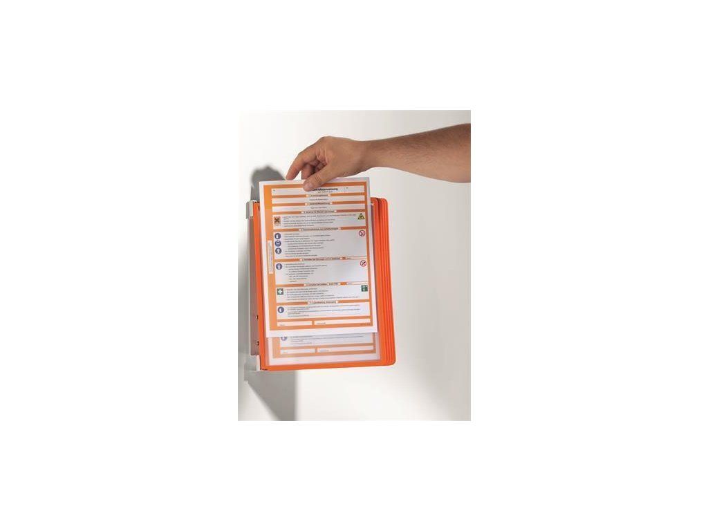 Kovový nástěnný držák s 5 prezentačními kapsami na formát A4. Vhodný pro umístění různých pracovních materiálů. Kapsy chrání dokumenty před znečištěním.Barva: oranžová