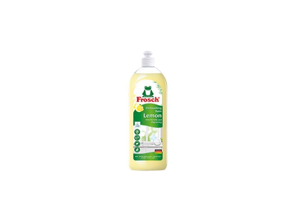 Frosch citrusový prostředek na mytí nádobí s obsahem balzámu zářivě myje nadobí. Výtažek z citrusu je účinným odmašťovačem. Nevysušuje pokožku, pH neutrální.