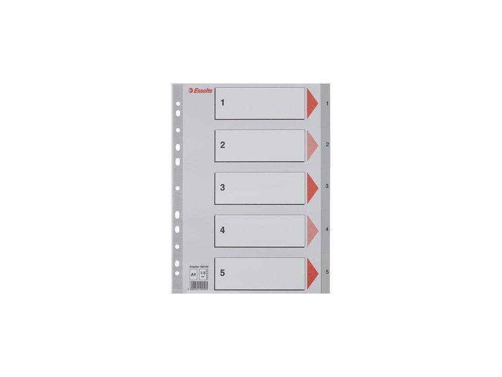 Rejstříky, šedá, A4, plast, 1-5, ESSELTE