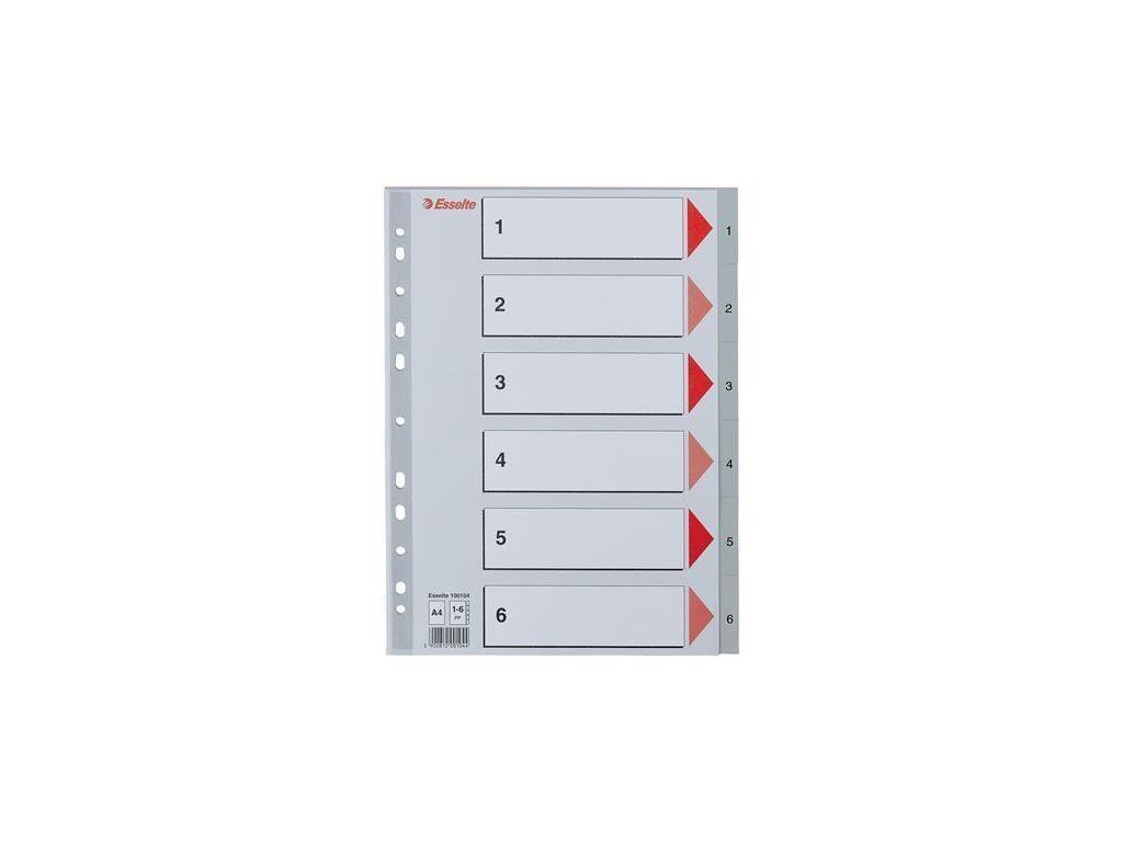 Rejstříky, šedá, A4, plast, 1-6, ESSELTE