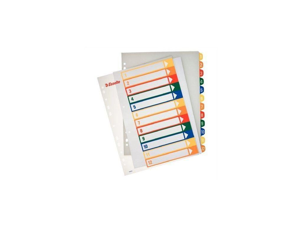 Rejstříky popisovatelné na počítači, transparentní, plast, A4 Maxi, 1-12, ESSELTE
