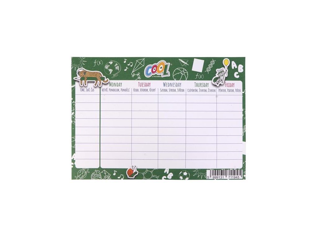 Rozvrh, žlutá / zelená, A5, oboustranný, 100 ks/ balení, COOL BY VICTORIA