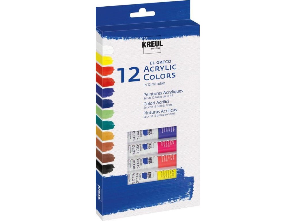 Sada Akrylová barva "EL GRECO", 12 barev, 12 ml v tubě, KREUL