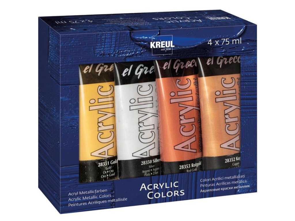 Sada Akrylová barva "EL GRECO", 4 barvy, metalické,75 ml v tubě, KREUL