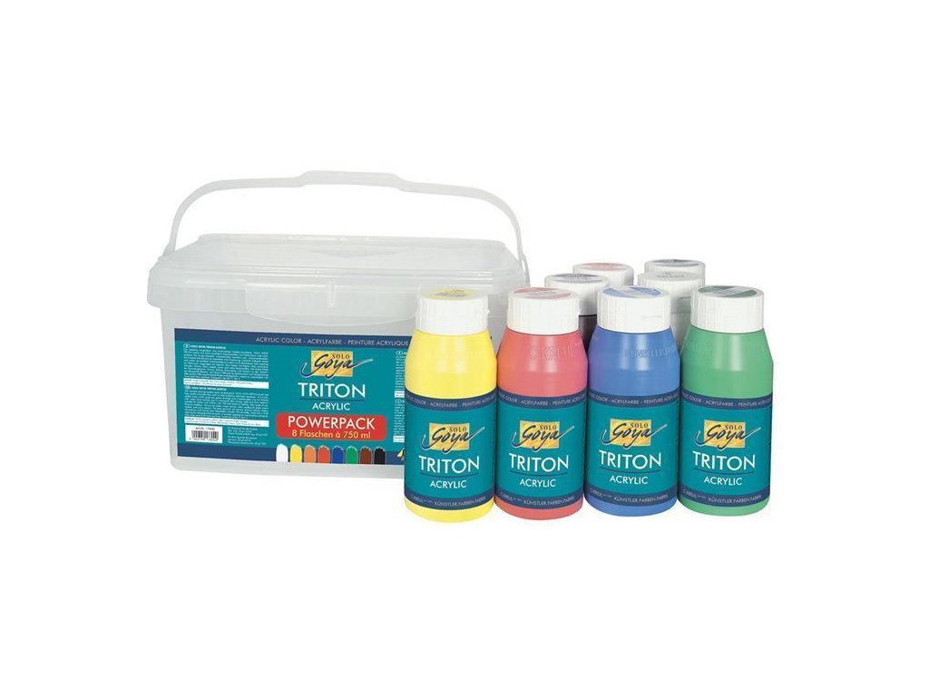 Akrylová barva TRITON SOLO GOYA 750 mlVšestranná, vysoce kvalitní akrylová barva ve studijní kvalitě. Lehce roztíratelná. Ideální barva pro umělecké akademie a školy. Vhodná na plátno, papír, dřevo, stěny, karton, kámen, kov, kůži a plasty.