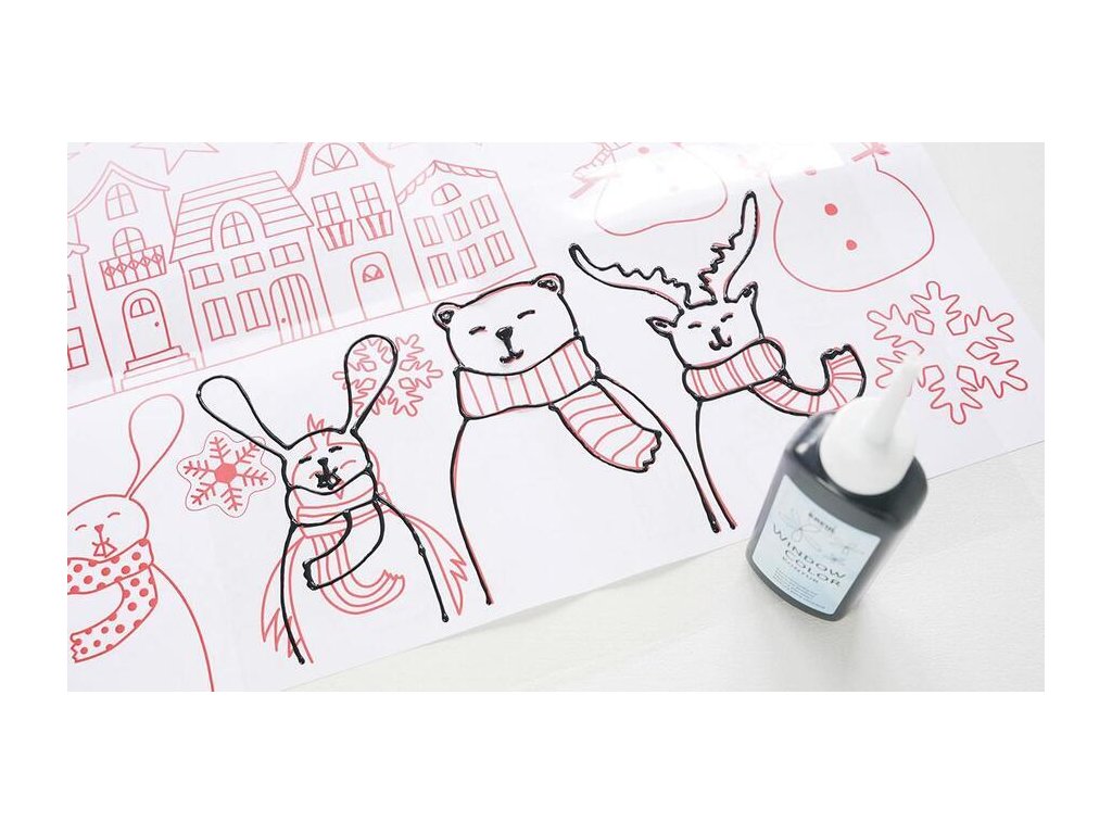 Zde je návod, jak na to: konturovací barvou nakreslete obrys motivu na arch speciální fólie a nechte asi 2 hodiny zaschnout. Poté pomocí barvy Window Color vyplňte prázdná místa a nechte 24 hodin zaschnout. Odlepte obrázek z fólie a nalepte jej na okno. Pokud chcete motiv použít vícekrát, mírně jej navlhčete, aby se zlepšila přilnavost.