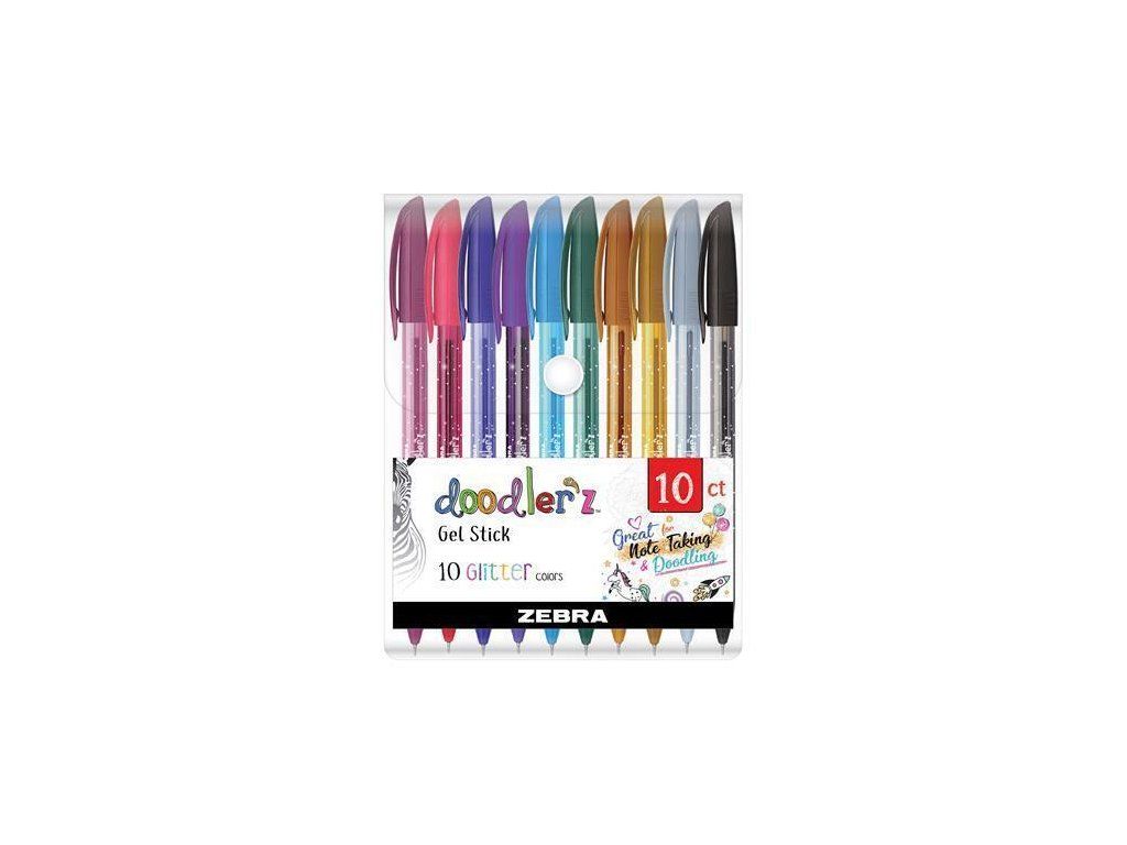 Sada gelových per "Doodler'z Glitter", 10 třpytivých barev, 0,33 mm, ZEBRA 02619