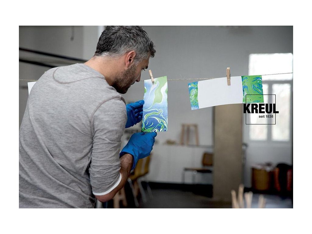 Pro jednobarevné mramorování použijeme kombinaci bezbarvé barvy a žádané barvy