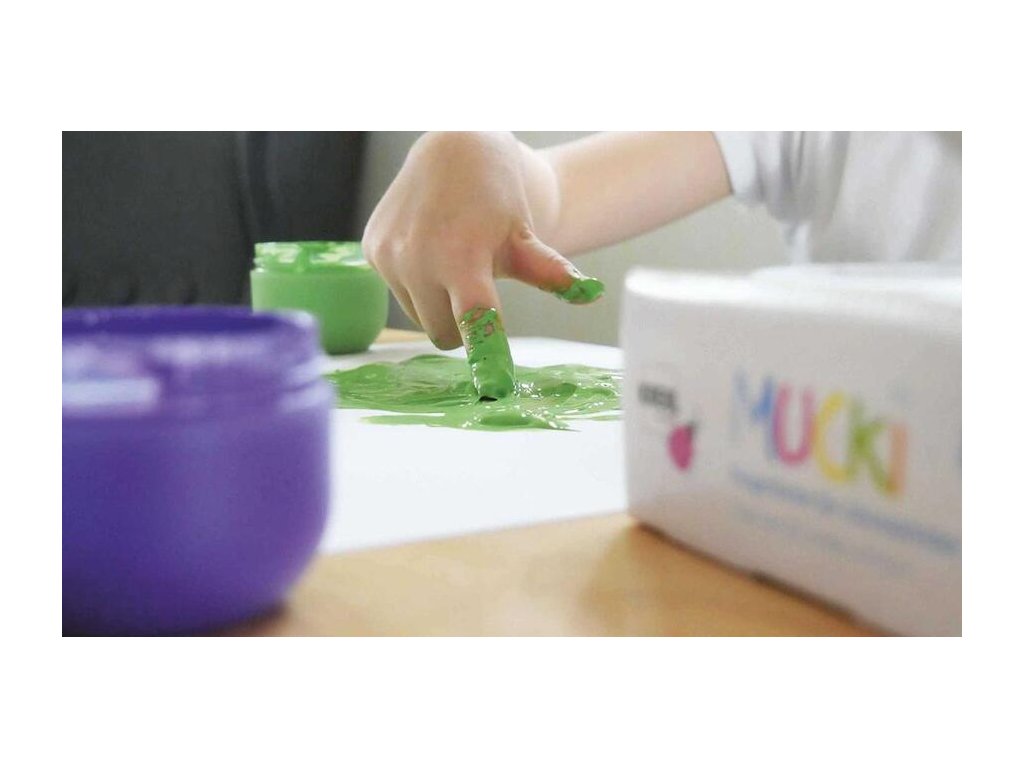 Sada prstových barev MUCKI 6 jasných barevJasné barvy pro děti štěstěny.