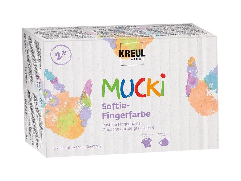 Malování, razítkování, míchání či jen obtisknutí malých ručiček namočených do prstových barev. Když se malé prstíky a nožičky dostanou do kontaktu s pestrými prstovými barvami MUCKI, stane se toho tolik: trénují se senzomotorické dovednosti, zlepšují se prstové dovednosti, rozvíjí se kreativita, barevné vnímání a roste radost a zvědavost. Prstové barvy MUCKI jsou dermatologicky testované, bez parabenů, bez lepku, bez laktózy a veganské. Jejich velkou výhodou je, že se snadno smývají jak z rukou, tak i z oblečení při teplotě 30 °C a vyšší. Tyto barvy jsou také šetrné k životnímu prostředí.