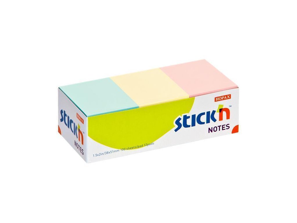 Samolepicí bloček, mix pastelový barev, 38 x 51 mm, 12x 100 listů, STICK N 21004