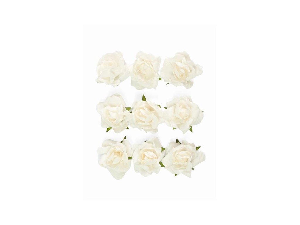 Samolepicí papírové květiny - růže, bílé, 9 ks