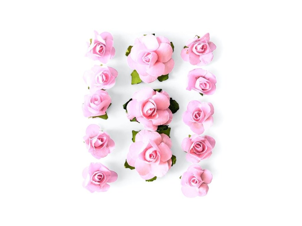Samolepicí papírové květiny - růže, růžové, 13 ks