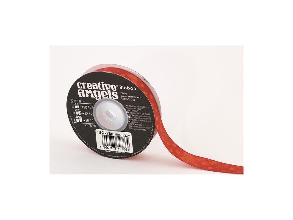 Saténová stuha, červená s puntíky, 15 mm x 22 m, IBO2786