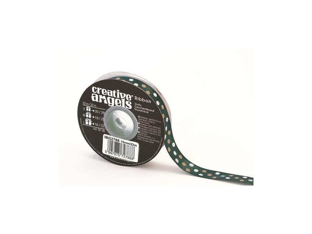 Saténová stuha, tmavě zelená s puntíky, 15 mm x 22 m, IBG2788