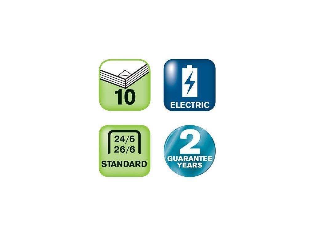 Kompaktní a přenosná bateriová sešívačka do kanceláře, na recepci i na domácí použití. Pohodlná pro použití v ruce, na stole i na cestách. Přední plnění drátků pro jejich snadné doplňování.Kapacita sešívání: 10 listů (80 g/m2)