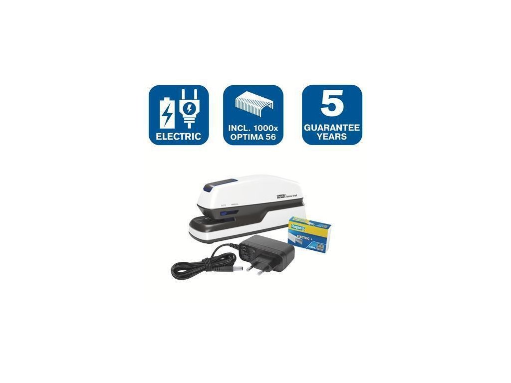 Pro sešívání bez námahy. Plně automatická nebo manuálně ovládaná (stiskem přední části). Kompaktní velikost pro použití na stole i v ruce. Vodítko umožňuje přesné umístění drátků na papír. Drátky Optima 56 sešívají, aniž by se zasekávaly. Ideální pro použití v kanceláři, na recepci nebo na pokladnách obchodů.Kapacita sešití až 20 listů papíru (80 g/m2)