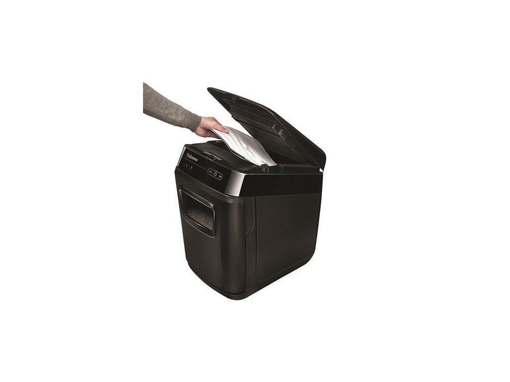 Snadné použití – stačí vložit dokumenty do podavače, stisknout tlačítko skartování, a můžete se vrátit zpět ke svým povinnostem – stroj udělá zbytek za Vás