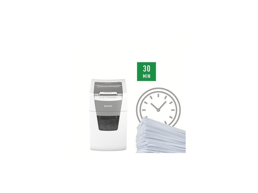 Nepřetržitý chod po dobu 30 minut, umožňující skartování plné komory najednou, ECO režim spánku se aktivuje po 3 minutách nečinnosti.