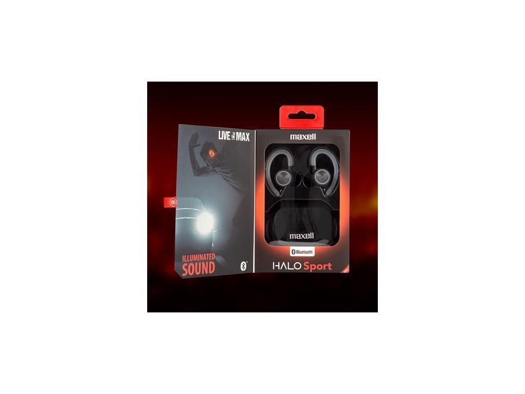 Sluchátka s mikrofonem "Halo Sport", černá, bezdrátová, Bluetooth, LED, MAXELL