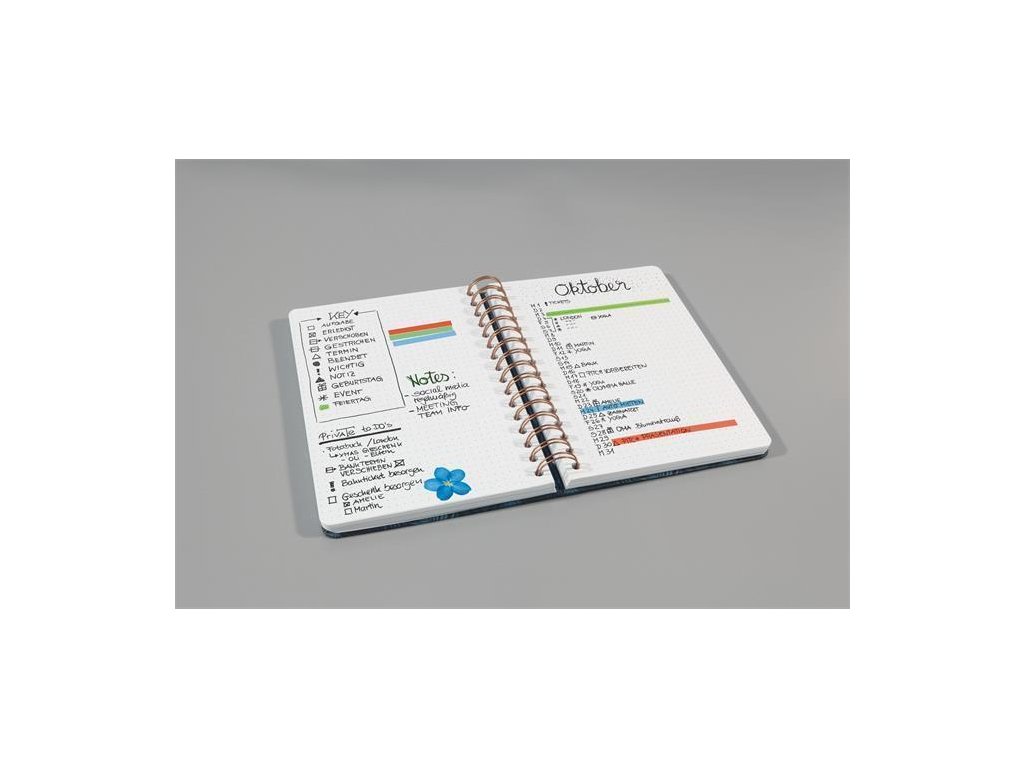Spirálový sešit s mikro perforovanými listy a kapsou na zadní straně. Sešit má tvrdé a matné desky.Vazba: kroužková