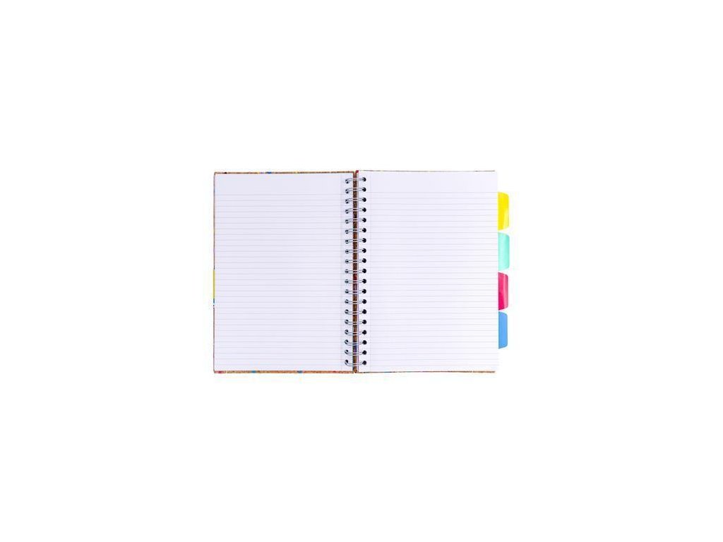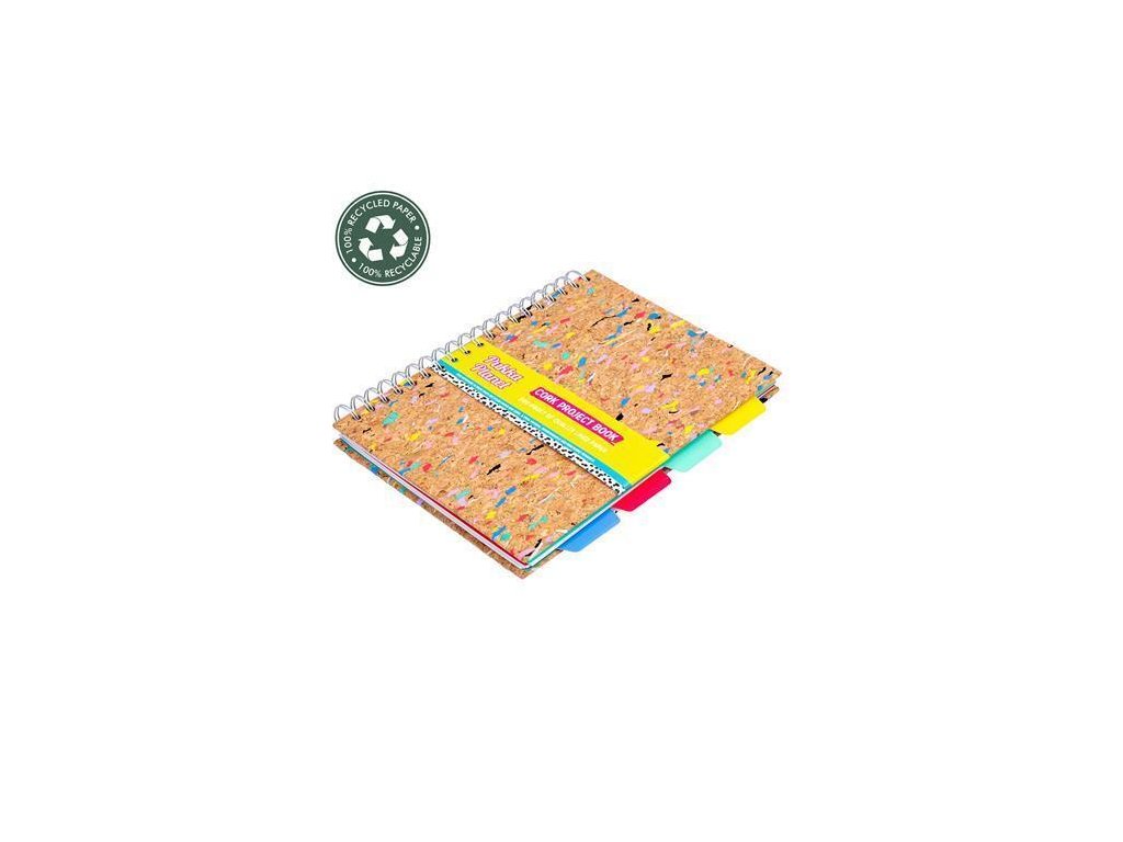 Spirálový sešit s pevnou vazbou v korkovém designuVlastnosti: pevné desky; kroužková vazba; se 4 přemístitelnými registry