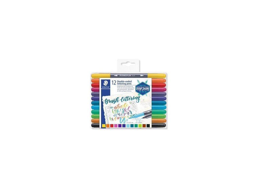 Štětcové fixy "Brush letter Duo", sada, 12 barev, 0,5-0,8/1,0-6,0 mm, oboustranné, STAEDTLER